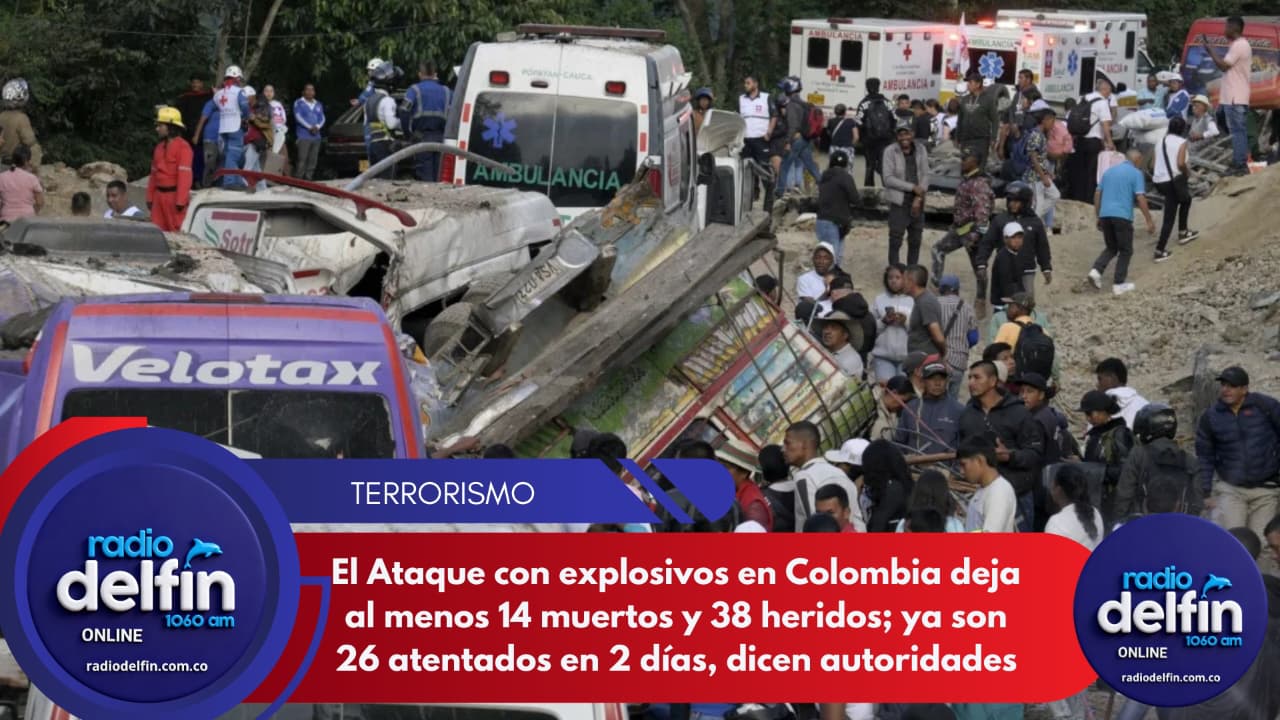 Al menos 14 personas murieron y 38 resultaron heridas, entre ellas cinco menores, este sábado por un ataque con artefacto explosivo contra vehículos en la vía Panamericana en el Cauca, en el suroeste de Colombia, informaron autoridades del país. Las Fuerzas Militares de Colombia atribuyen el accionar violento a las disidencias de las Fuerzas Armadas Revolucionarias de Colombia (FARC), bajo el mando de alias “Iván Mordisco”.