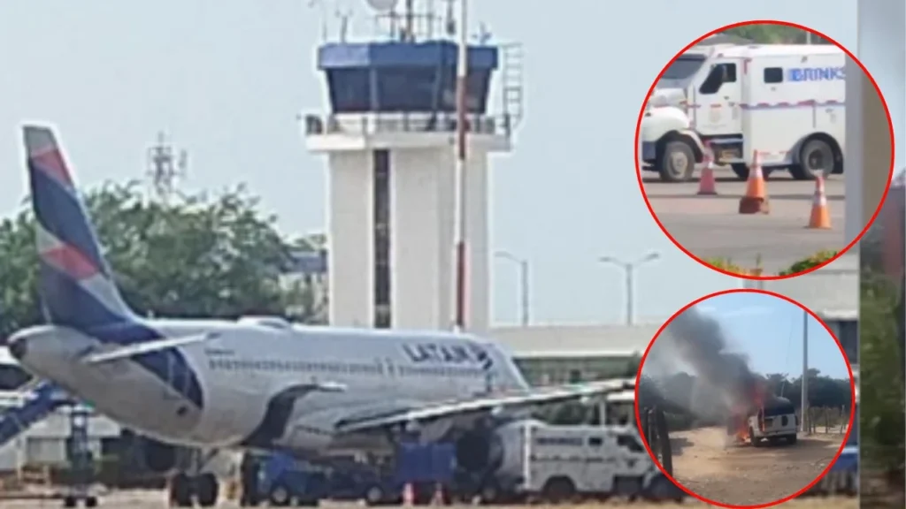 En medio de un tiroteo, varios hombres armados interceptaron dos vehículos en la pista del aeropuerto Almirante Padilla de Riohacha, los cuales transportaban grandes sumas de dinero. Según videos difundidos, los atacantes provocaron la explosión de los vehículos, lo que obligó a suspender temporalmente las operaciones en la terminal aérea.