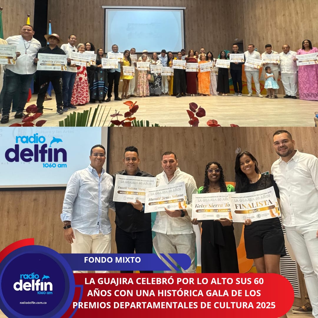 Riohacha, 17 de diciembre de 2025 – Con una asistencia superior a los 300 invitados y una puesta en escena que exaltó la diversidad, la memoria y la creatividad del territorio, la Gala de Premiación de los Premios Departamentales de Cultura 2025 se consolidó como uno de los eventos culturales más significativos en la historia reciente de La Guajira. En el marco de la conmemoración de los 60 años del departamento, el Fondo Mixto para la Promoción de la Cultura y las Artes celebró una noche en la que el arte, la palabra, la música y la identidad fueron protagonistas, otorgando los estímulos económicos más altos que ha entregado esta convocatoria.
